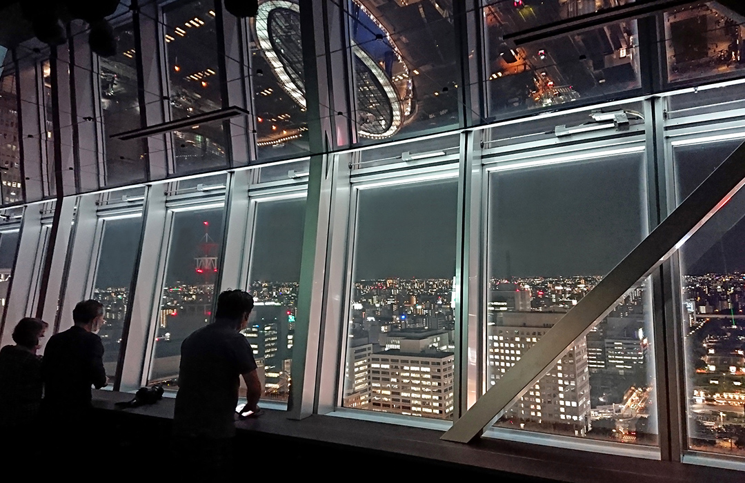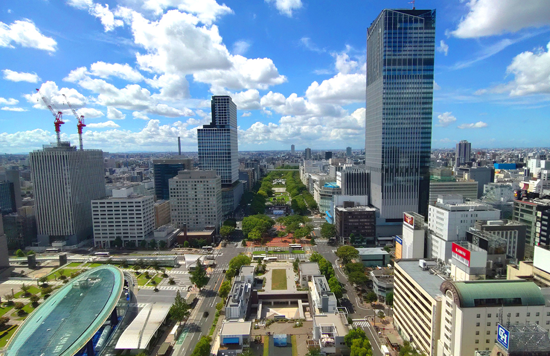 地上90メートルに位置する屋内展望台スカイデッキでは、大都市名古屋の景色を一望することができ、夜の景色は日本夜景遺産に認定されています。展望台の天井に設置されたミラーに外の景色が映り込むこれまでにない景観は必見。夜は季節に合わせたプロジェクションマッピングによる映像と音響で名古屋の夜景を彩ります。